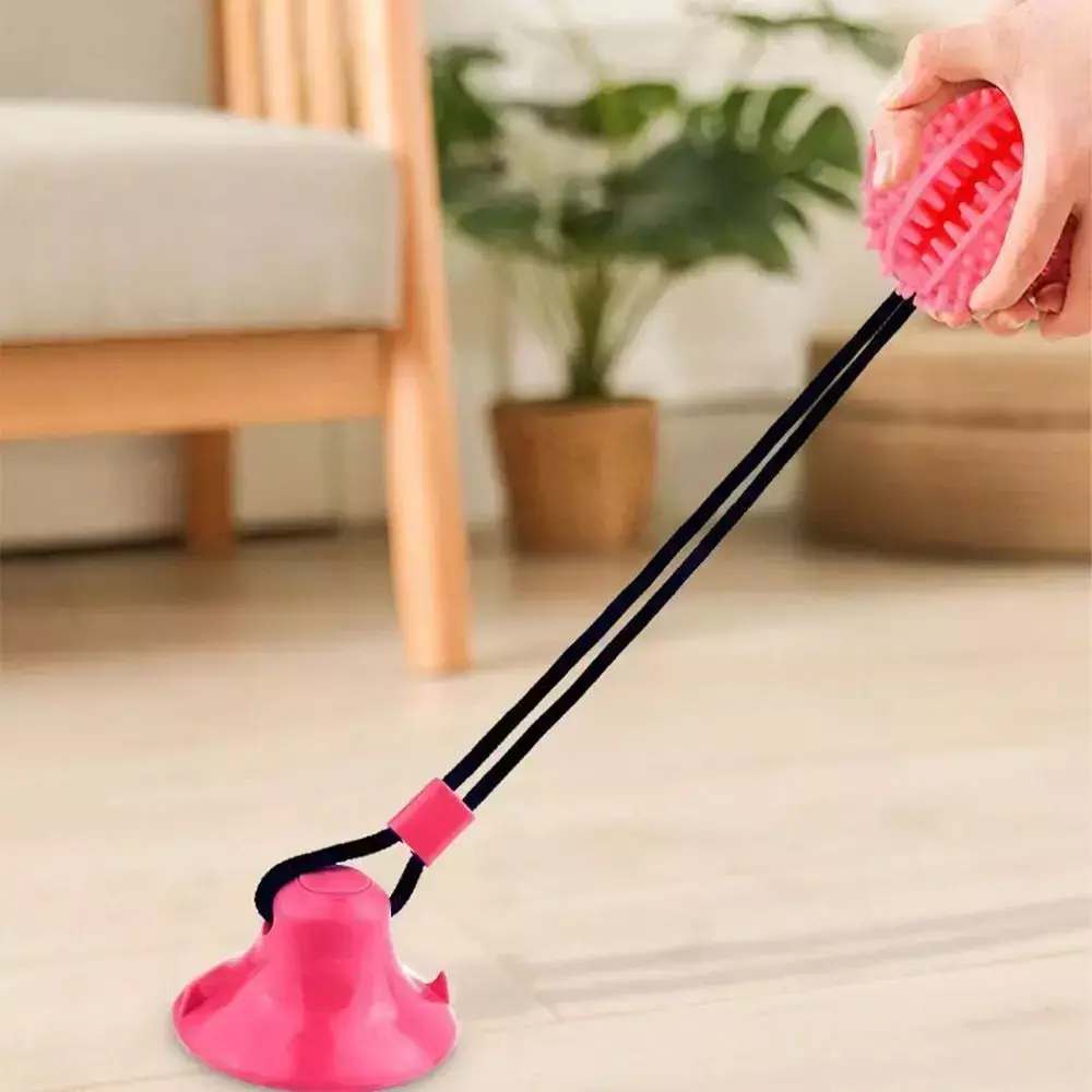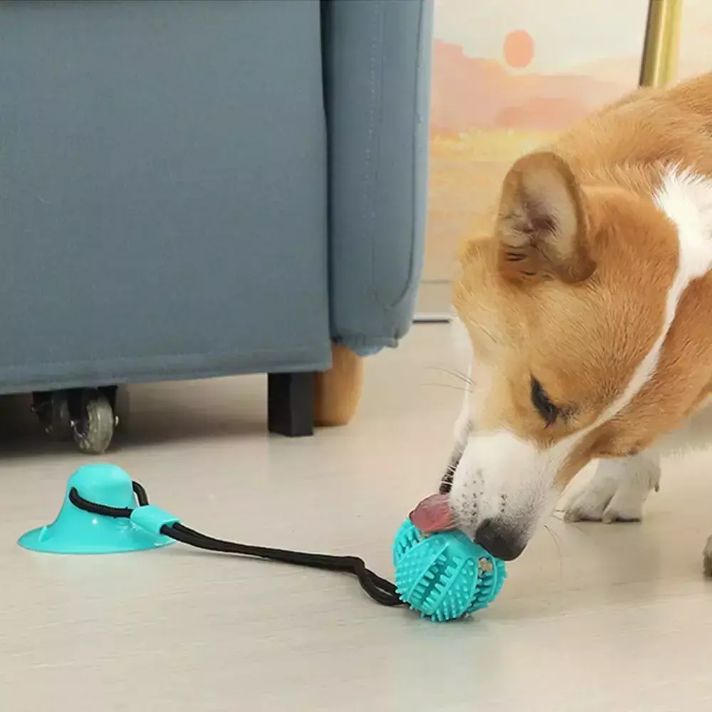 ✅ Ventosa poderosa fixa firme no chão, azulejo, vidro ou piso liso, permitindo que o pet puxe, morda ou brinque com a bola sem ela sair do lugar.