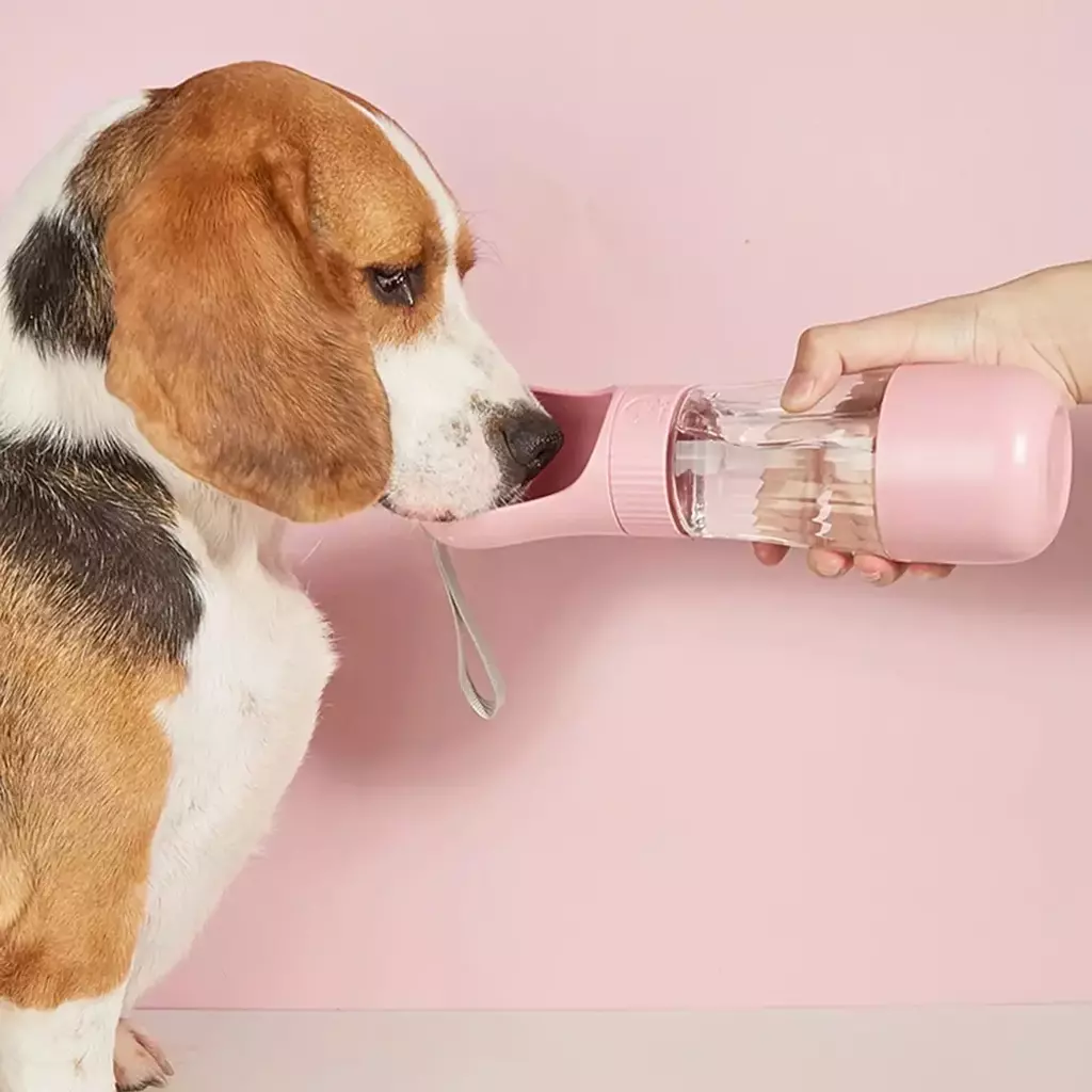 Design 2 em 1: Combina uma garrafa de água e um pote para ração em um único produto. ✌️